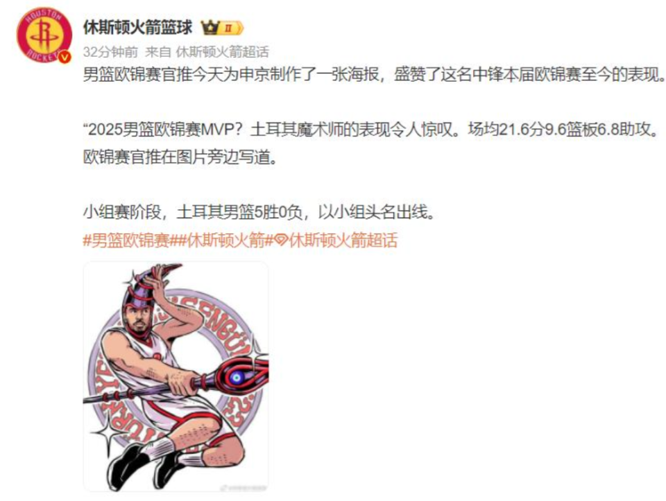 土耳其新星申京的爆发性表现成为赛事最大亮点,其热度甚至超越东契奇、约基奇等NBA顶级球星。这位火箭队新核在小组赛阶段场均贡献28分13篮板8助攻的全面数据,特别是在战胜塞尔维亚的关键战役中,其表现力压MVP约基奇。欧锦赛官方已将申京列为赛事MVP的最有力竞争者,他带领土耳其队以五战全胜的完美战绩挺进淘汰赛