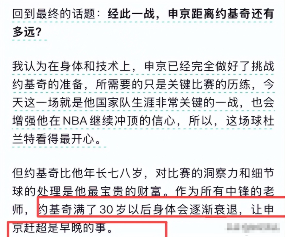虽然在未来数年内,申京在即战力方面存在超越约基奇的可能性,但就职业生涯整体成就而言,苏群预测未来十年内,联盟现役中锋群体中恐怕仍难有人能企及约基奇已建立的历史高度。这种判断既基于对运动员发展规律的客观认识,也体现了对篮球运动竞技特点的深刻理解。